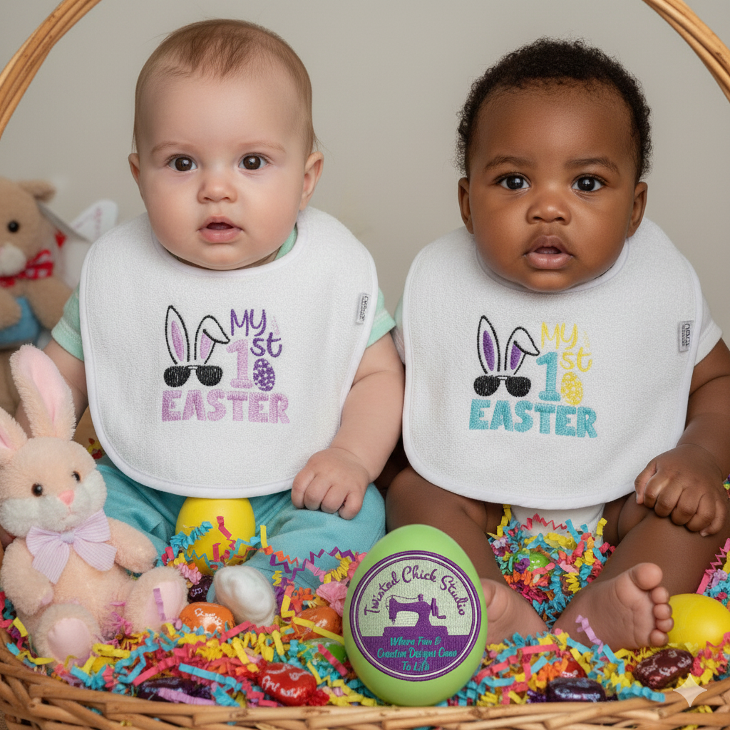 Embroidered My First Easter Bib Bunny with Sunglasses-Pink Infant size