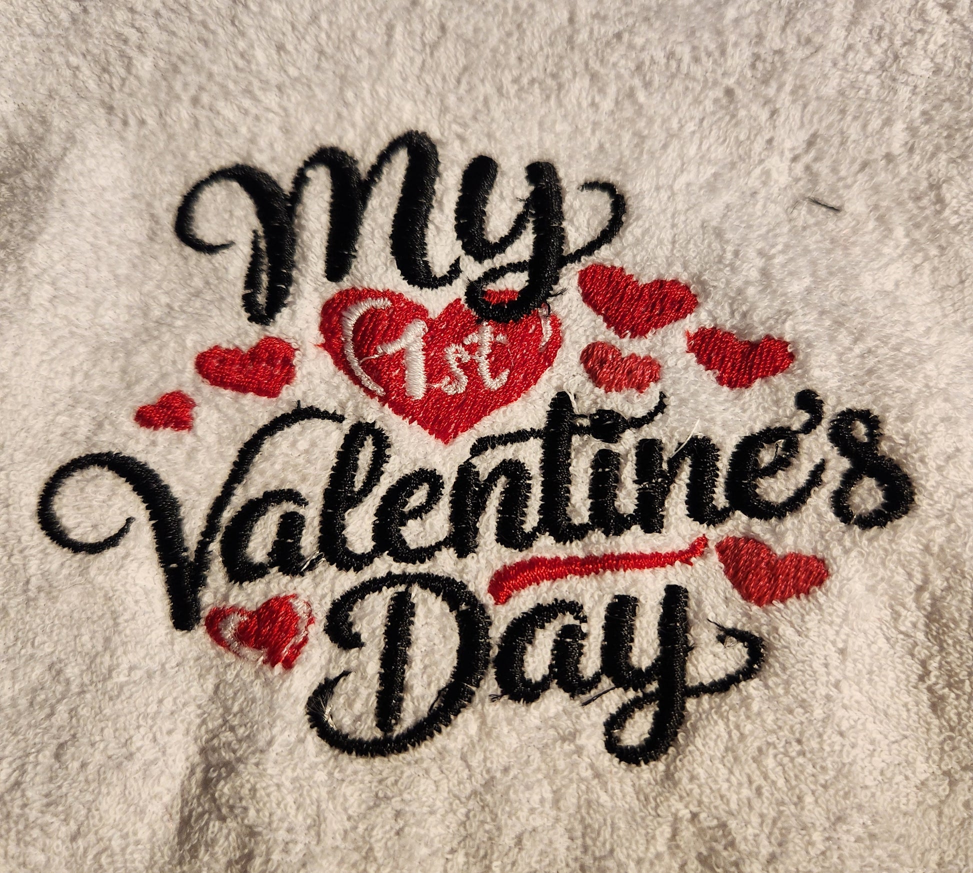 Embroidered My First Valentines Day Bib Red and Black Infant size
