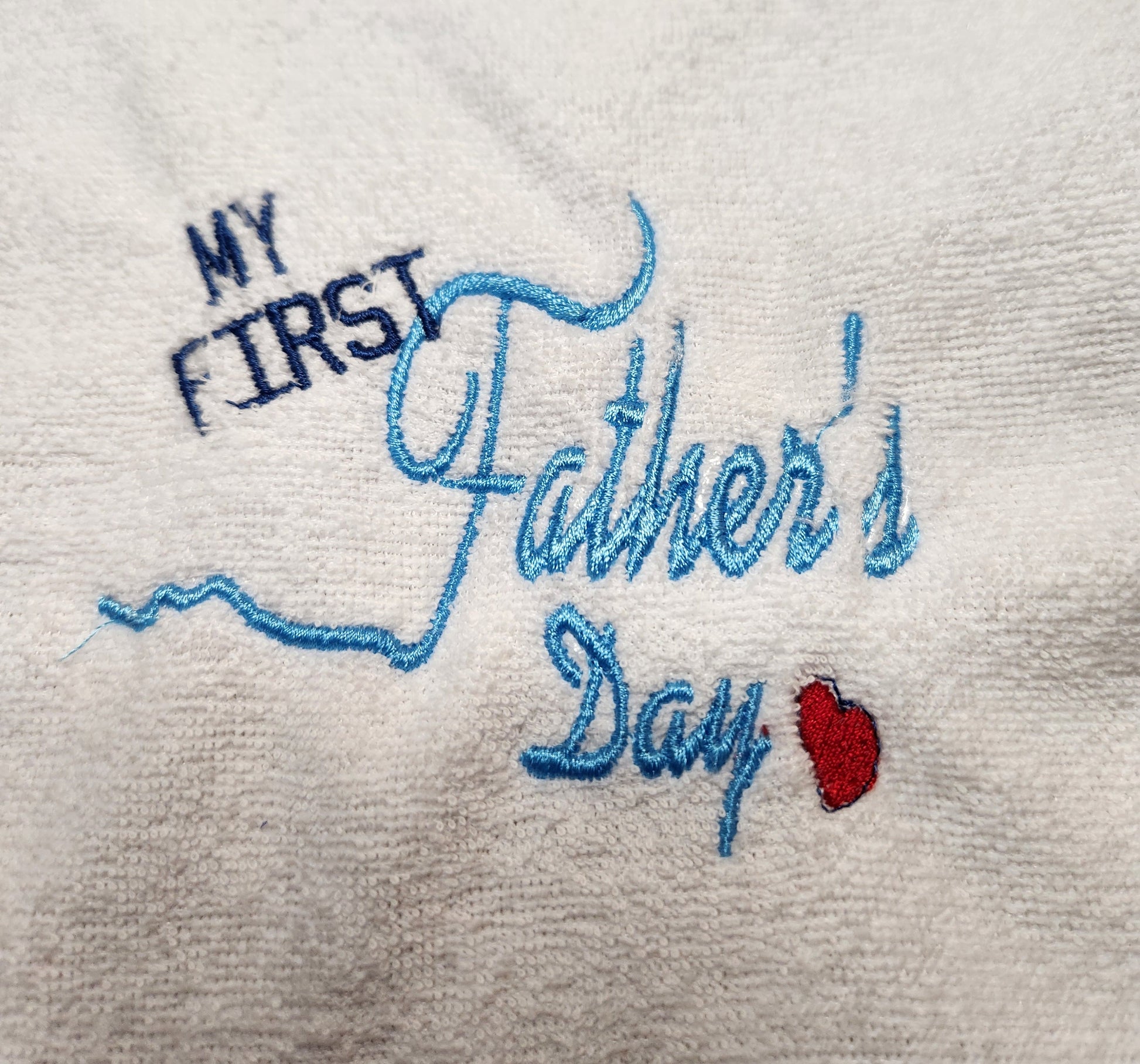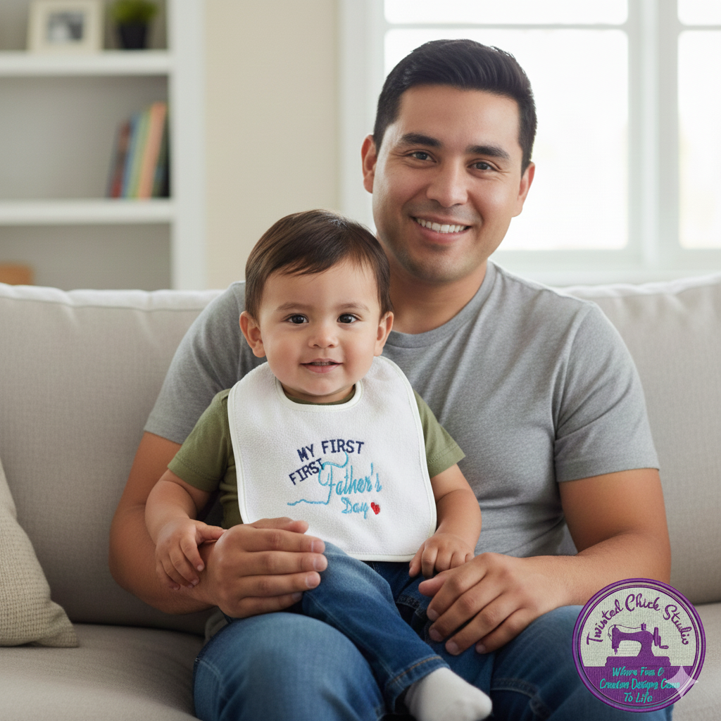 Crafted from soft 2-ply terry cloth, it features a charming embroidered "My First Father's Day" design that celebrates dad's special day.
